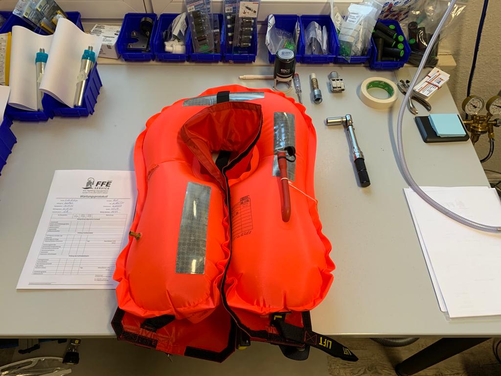 As a service provider for marine life jackets we are authorized and certified to perform the annual inspection of several manufacturers and types of inflatable life jackets in our workshop according to the latest requirements by SOLAS.
